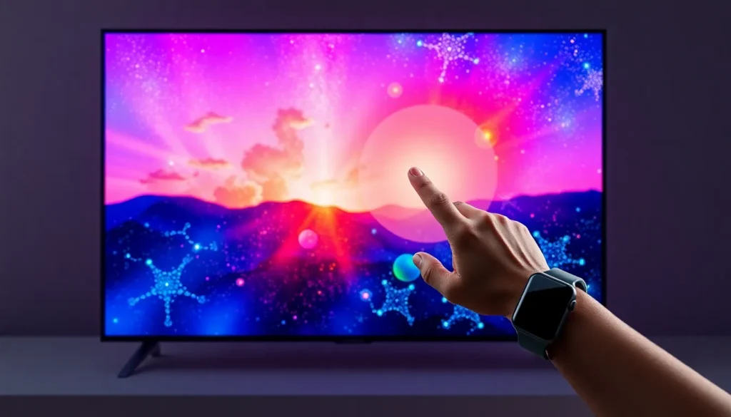 O controle funciona através do Galaxy Watch conectado à mesma conta Samsung da TV. Gestos específicos, como um gesto de pinça com a mão, são interpretados pela TV como comandos de seleção ou navegação. - Qual a principal vantagem do processador Q4 com IA?