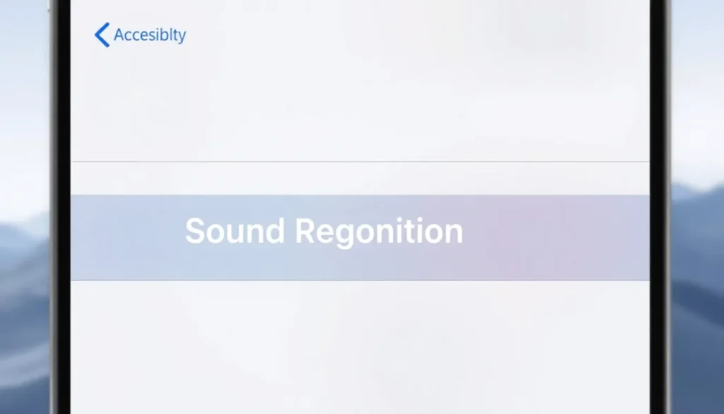 3. Dentro do menu de Acessibilidade, continue rolando até encontrar a seção Audição (Hearing) e, em seguida, selecione Reconhecimento de Sons (Sound Recognition).