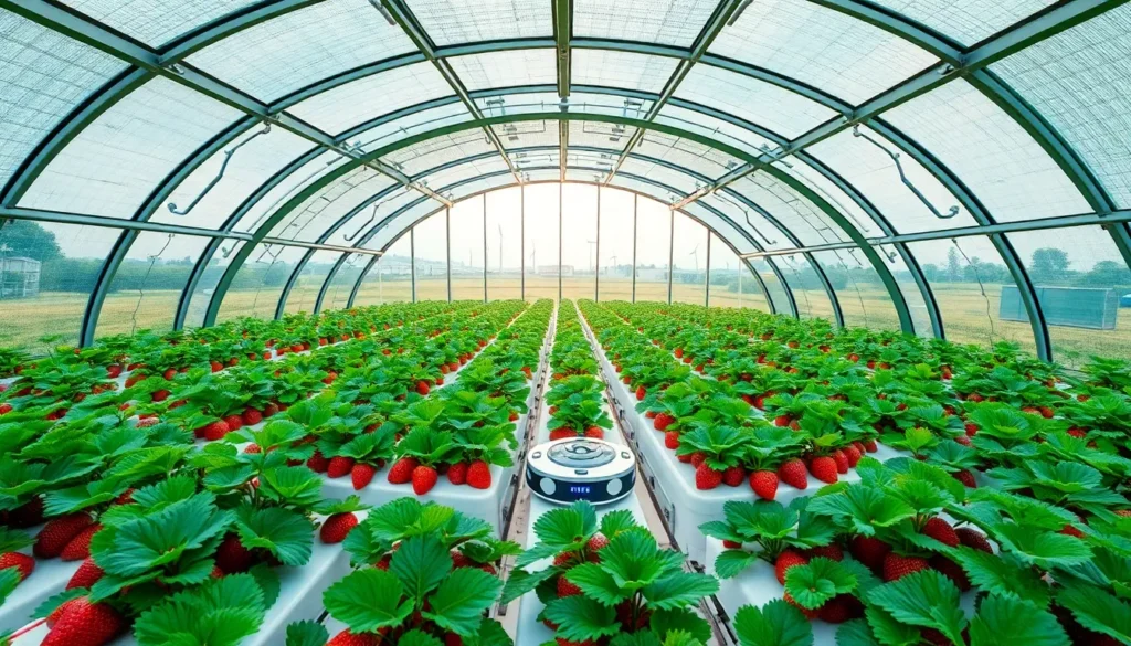 * Robô Distribuidor de Insetos: Este robô libera insetos benéficos que se alimentam de pulgões e outras pragas que poderiam devastar a colheita de morangos.