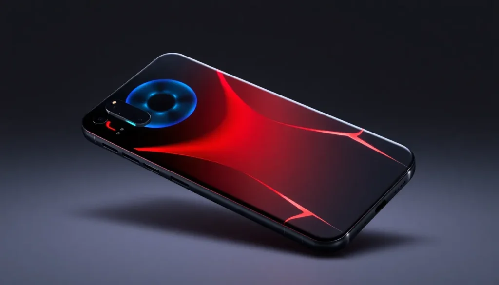 Ao observar a traseira do Red Magic, é visível um chip exposto com algumas conexões. Inicialmente, pode parecer um detalhe estético similar ao visto em modelos da Xiaomi, utilizando placas decorativas para dar um aspecto de “computador com placa exposta”. No entanto, a experiência indica que os circuitos visíveis são, na verdade, de plástico, funcionando como adereços visuais.
