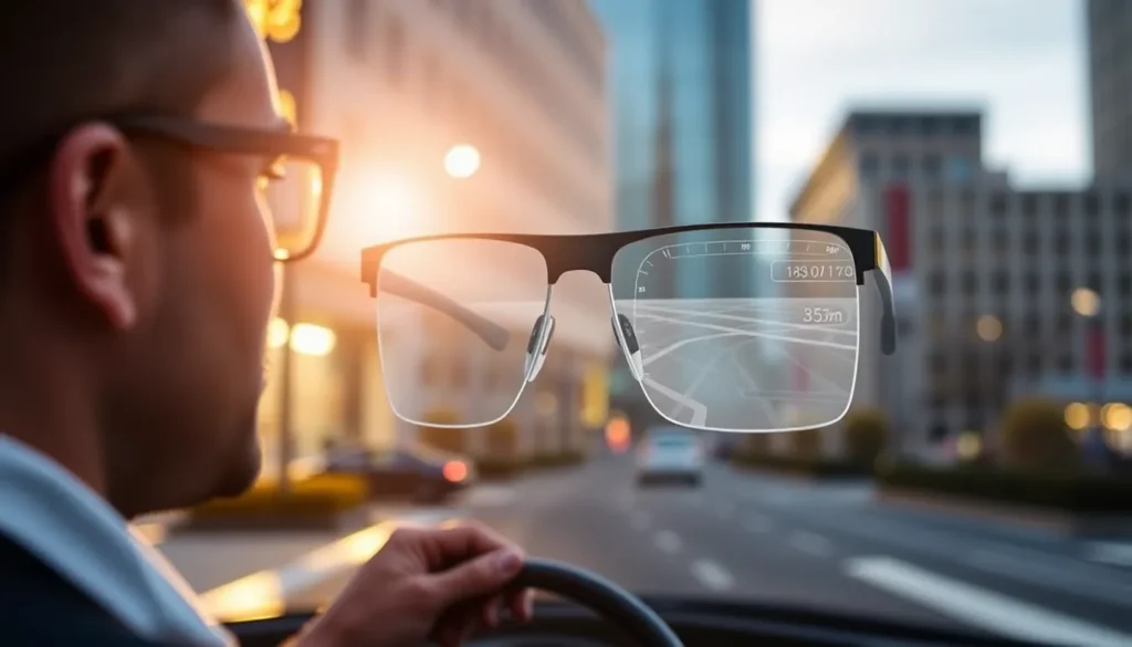 * A nova lente é significativamente mais clara que a anterior. No modelo anterior, o usuário via um grande “quadradão verde” ao exibir informações; agora, a projeção é muito mais sutil, permitindo interagir com o ambiente mesmo com dados exibidos na tela.